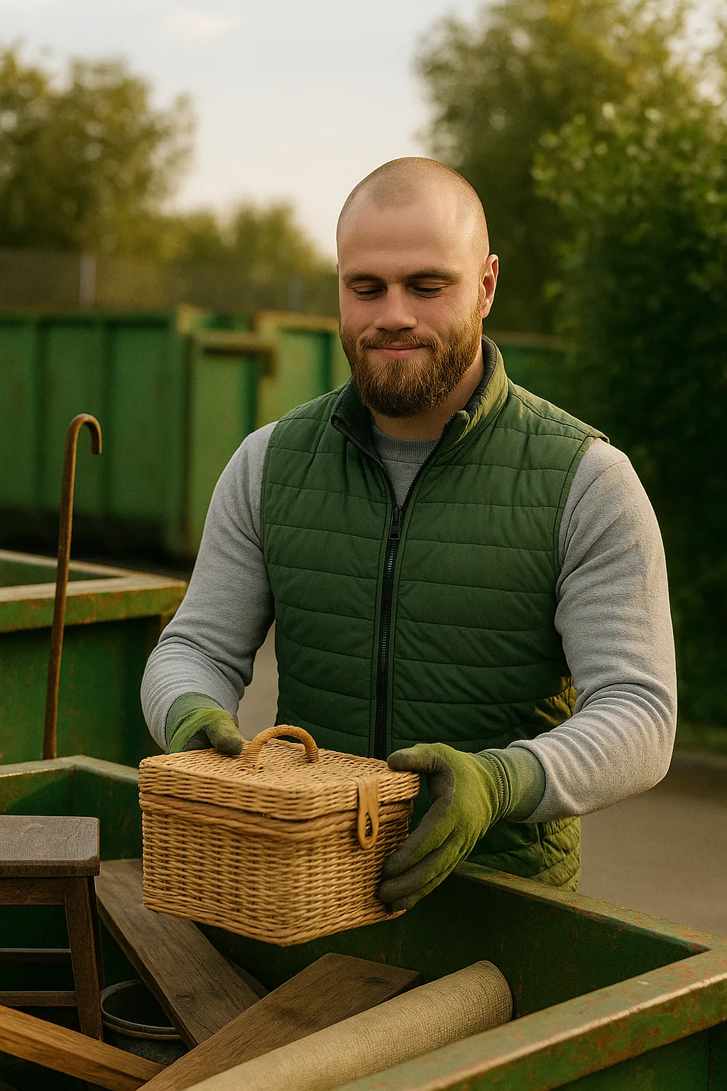 Wir sortieren mit Bedacht und geben weiter, was noch Nutzen hat. Alles andere entsorgen wir regional und umweltbewusst auf zertifizierten Recyclinghöfen in der Umgebung. So bleibt Gutes im Kreislauf, und die Natur wird geschont.